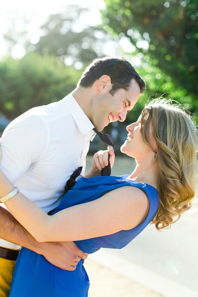 Generally couples pick two outfits for an engagement session: a more formal outfit and a casual outfit. We recommend saving your favorite outfit for later in the session, when couples usually feel more comfortable in front of the camera. And don’t forget to bring a few accessories! Statement necklaces, cute shoes and classic watches are great ways to add detail to outfits.